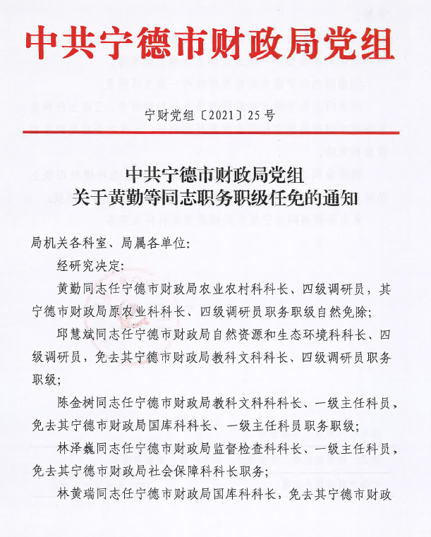 中共365bet网络娱乐_0365cc彩票APP官方版下载_365账号怎么注册财政局党组关于黄勤等同志职务职级任免的通知