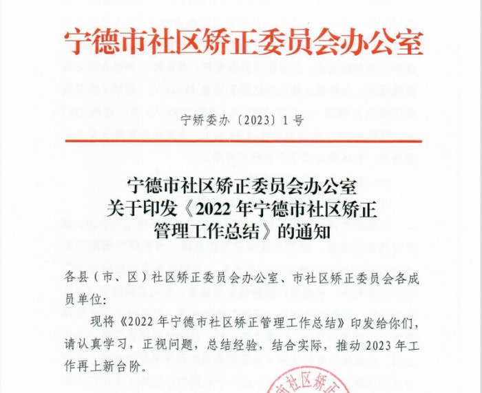 为提高社矫工作能力、指导2023年全市社矫工作,市矫委办印发《2022年365bet网络娱乐_0365cc彩票APP官方版下载_365账号怎么注册社区矫正管理工作总结》(宁矫委办〔2023〕1号)。市社矫局通过反思2022年的社矫工作情况,正视问题、总结经验,向全市社矫工作人员交答卷、亮成绩,推动2023年全市社矫工作再上新台阶。