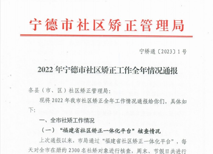 为促进全市社矫工作规范化水平,营造全市社矫“比学赶超”的氛围,市社矫局印发《2022年365bet网络娱乐_0365cc彩票APP官方版下载_365账号怎么注册社区矫正工作全年情况通报》(宁矫通〔2023〕1号)。市社矫局通过汇总通报各县(市、区)社矫工作问题,评分排名,借鉴经验,吸取教训,达到防范风险、消除隐患的目的。