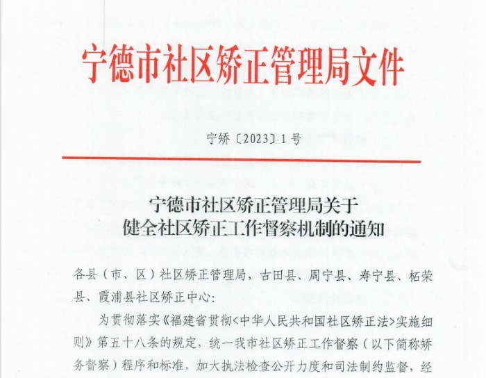 为统一全市社矫工作督察的程序和标准、加大执法检查的公开力度和司法制约监督,市社矫局下发《关于健全社区矫正工作督察机制的通知》(宁矫〔2023〕1号)。根据省社矫局文件要求,市社矫局启用《社区矫正工作督察登记表》和《司法所矫务督察记录》,推动全市矫务督察项目化、精准化、标准化,谱写矫务督察工作新篇。