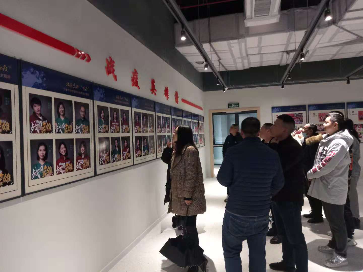 干部职工在“战疫”英雄榜前驻足观看交流。