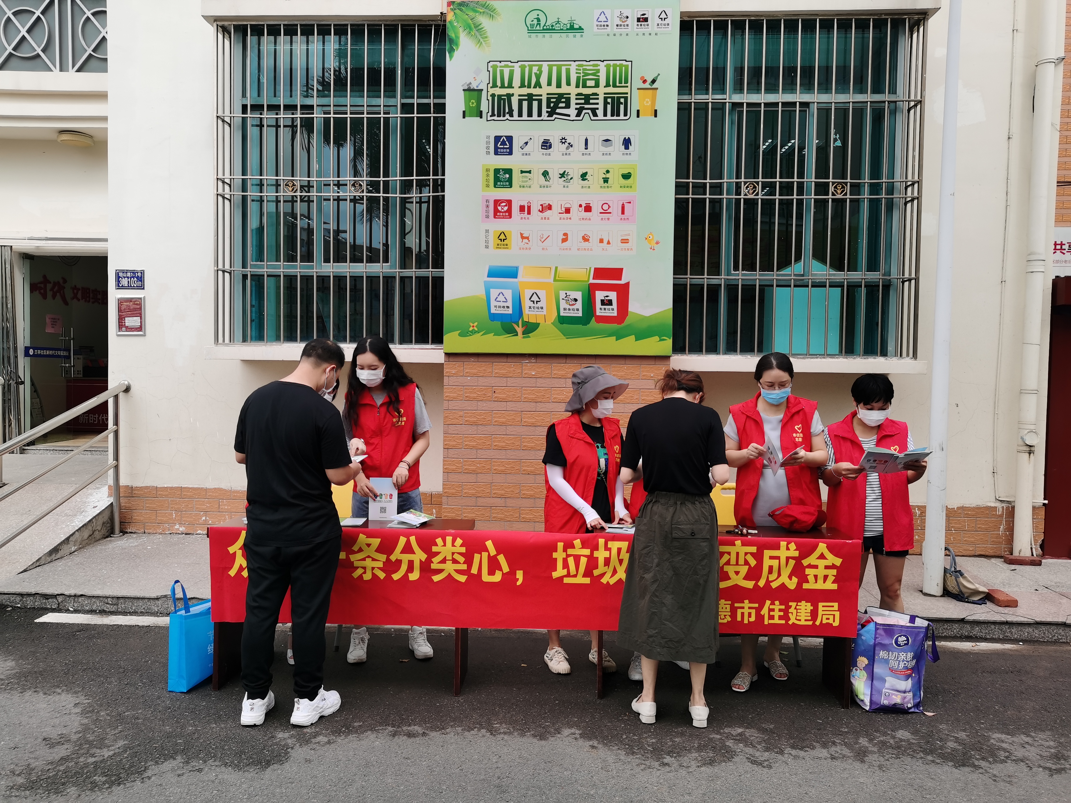 为了发扬支部党员带头“讲新风、树文明”,引导周边群众遵德守礼,养成良好的垃圾分类行为习惯。9月8日上午,市住建局机关第三党支部、第一党支部联合深入兰亭社区开展主题为“众人一条分类心,垃圾也能变成金”垃圾分类宣传活动。