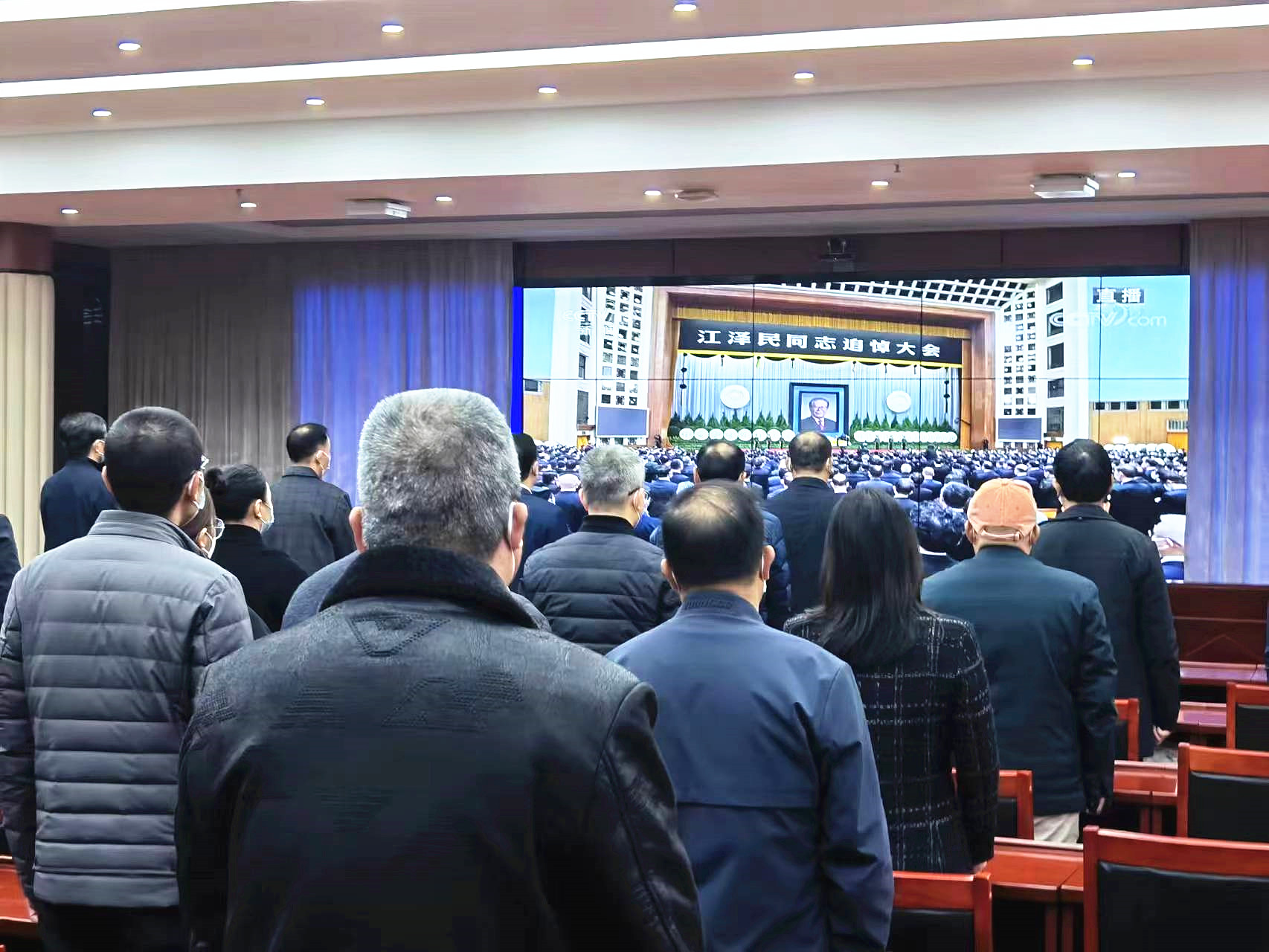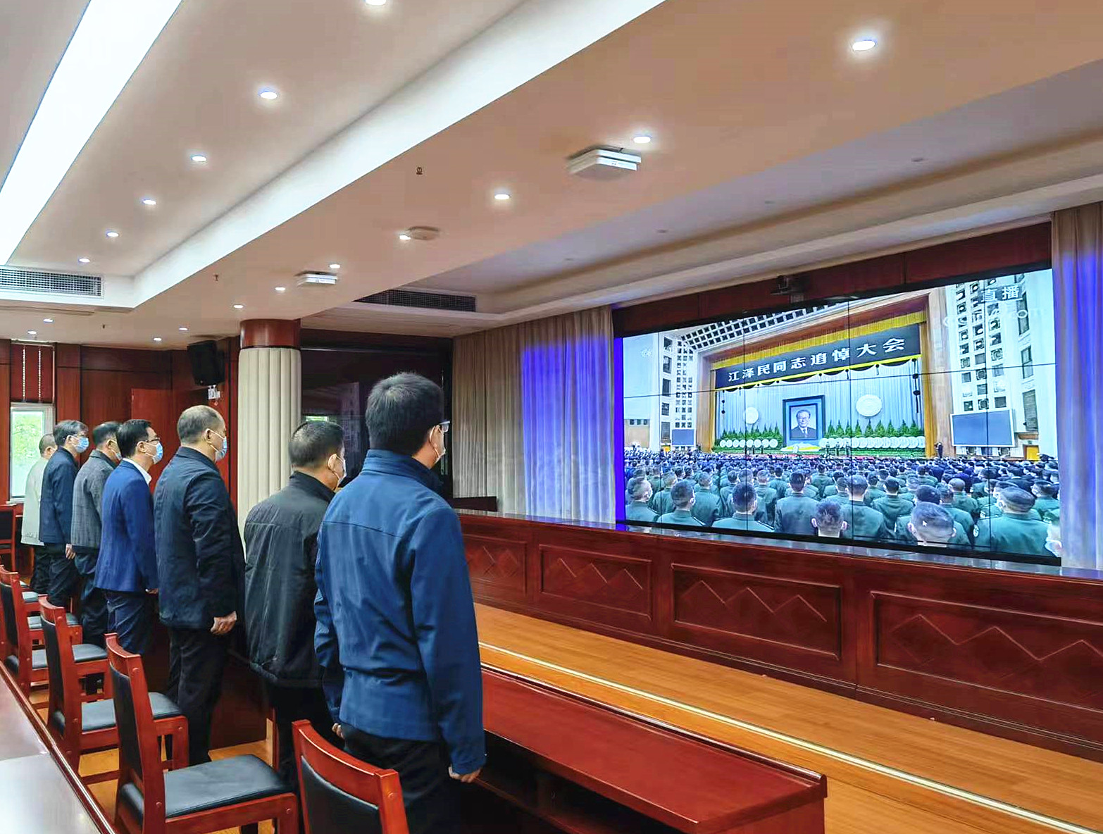2022年12月6日上午,市住建局党组书记、局长吴光华和在家局领导及局机关科室、直属事业单位同志在局二楼第一会议室集中收听收看江泽民同志追悼大会现场直播。同步参与悼念活动,与现场人员一道,肃立默哀3分钟,向江泽民同志表达最崇高的敬意与深切缅怀。